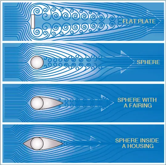 유선형(streamline)의 형상일 수록 이 form drag를 줄일 수 있다.